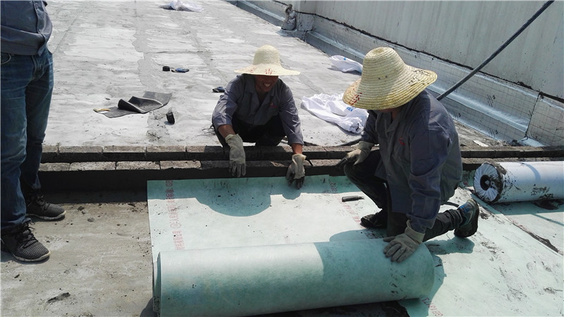 2018年5月9日,晶達建材次塢廠區2號樓屋面采用自產人民牌丙綸防水材料。